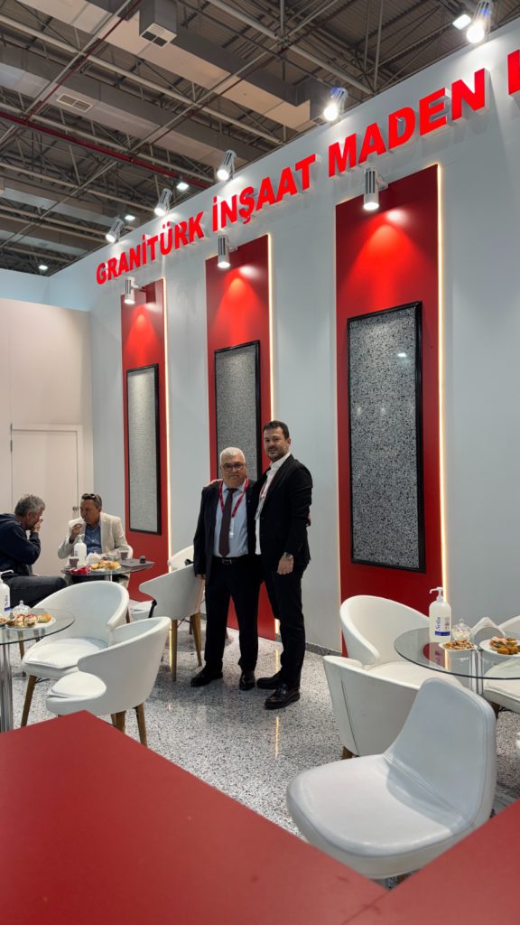 Başkan TÜLEK açılış sonrası Fuar’ da tek Çanakkale firması olarak yer alan Granitürk İnşaat Maden LTD.ŞTİ.’ nin standını ziyaret ederek Mehmet SARAL’ a Fuar’ın hayırlı olması dileğinde bulundu.